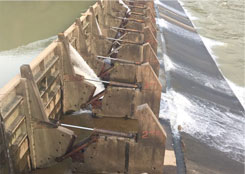 • 液壓壩操作靈活方便 可以任意放倒某一塊壩面