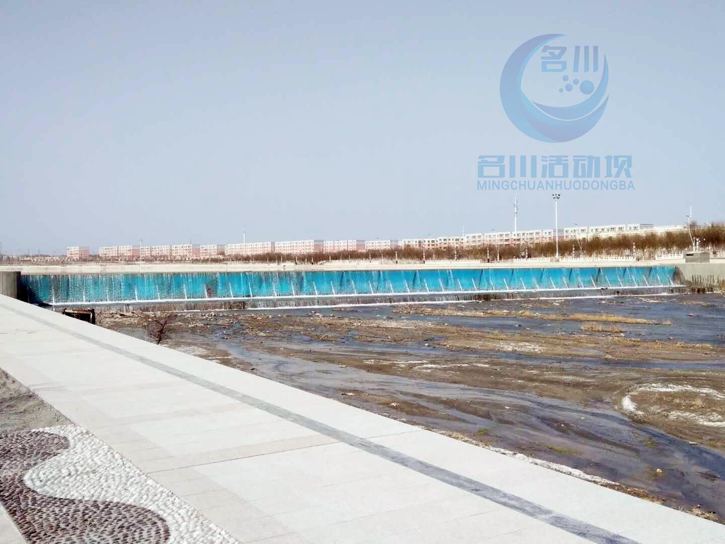 壩體采用弧形設計壩面可噴色彩文字、圖案、人工操作可產生“舞蹈瀑布”